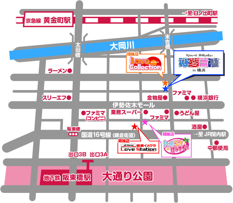 3. 道路の反対側にファミリーマートが見えましたら横断歩道を渡り、わき道の伊勢佐木モールを直進。
